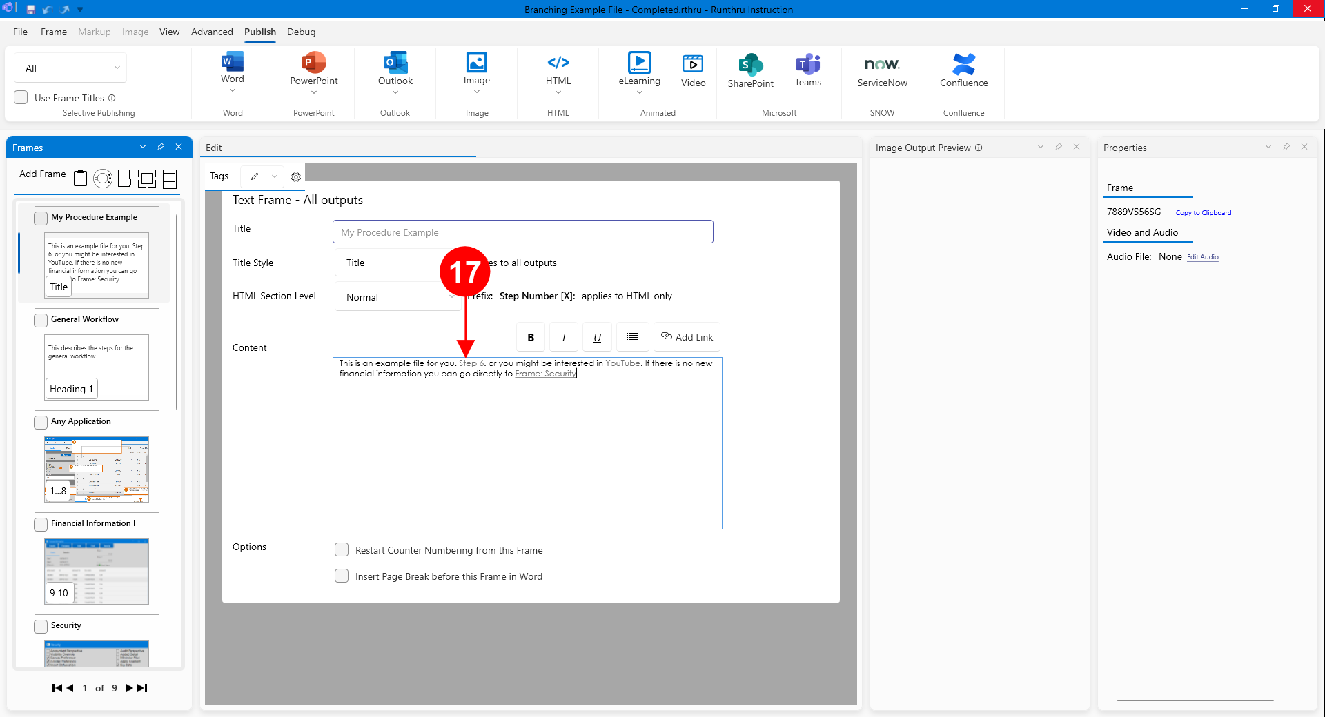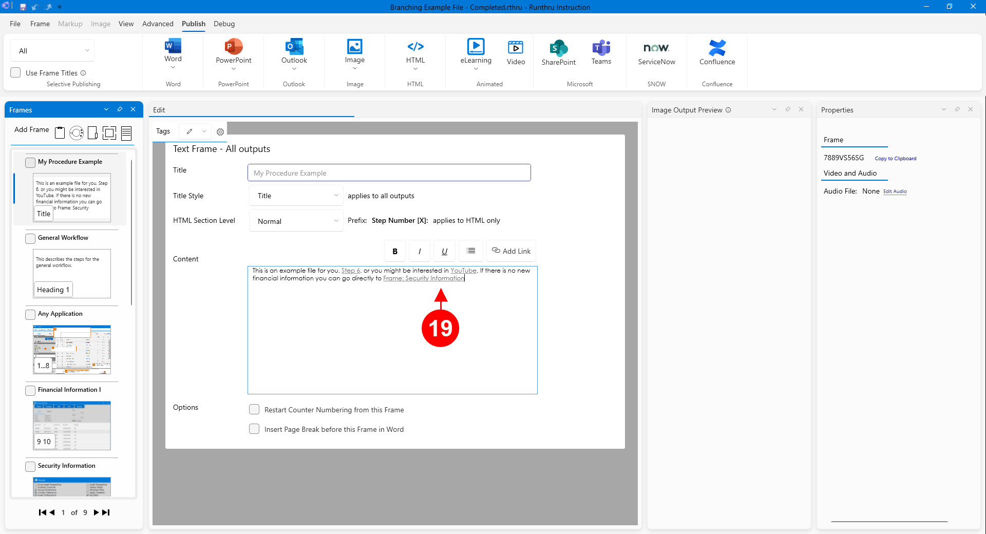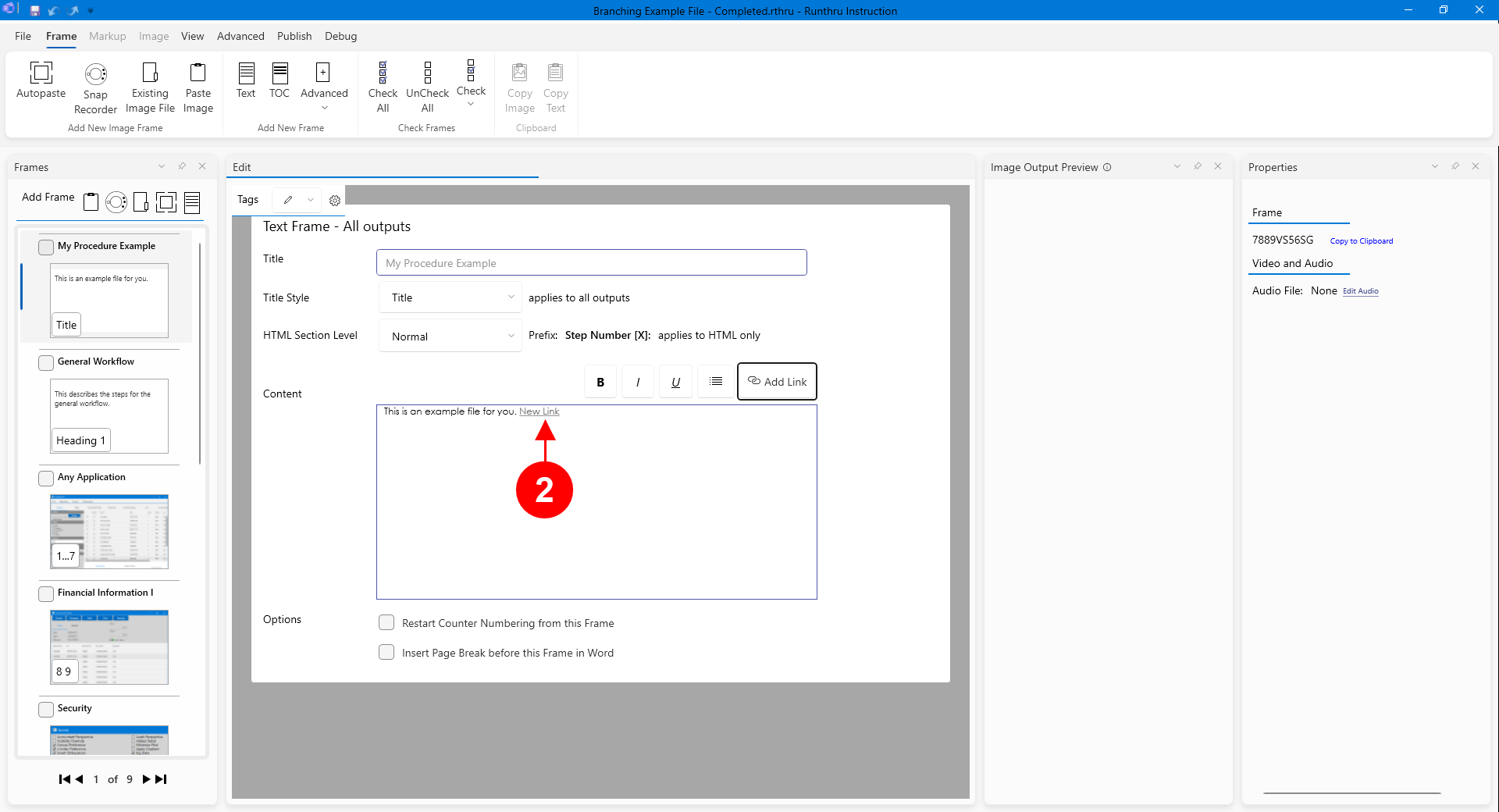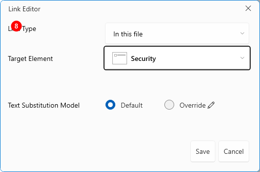 Likewise, changing the title of this Frame from Security to Security Information will update the link(s) targeting it.