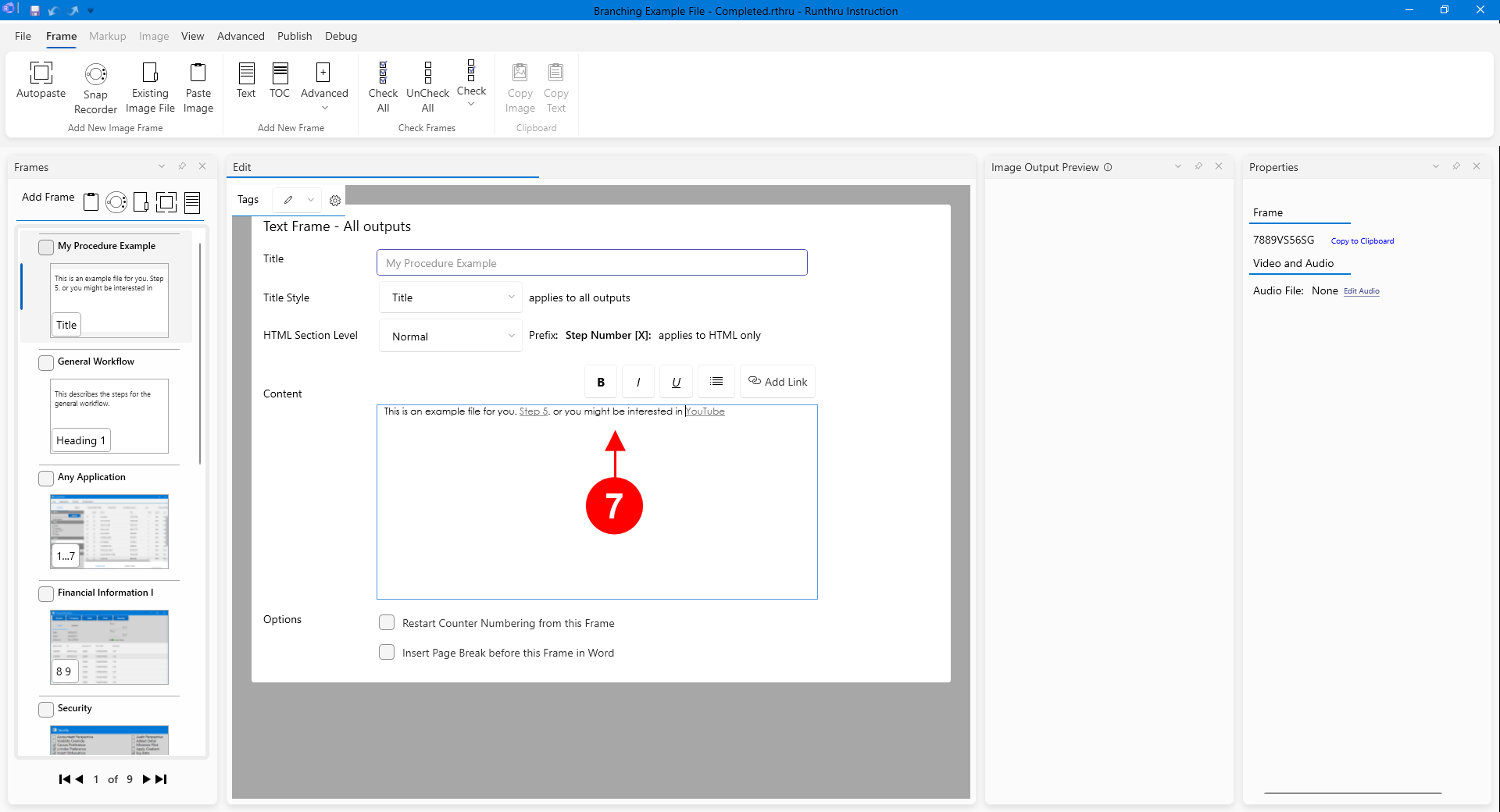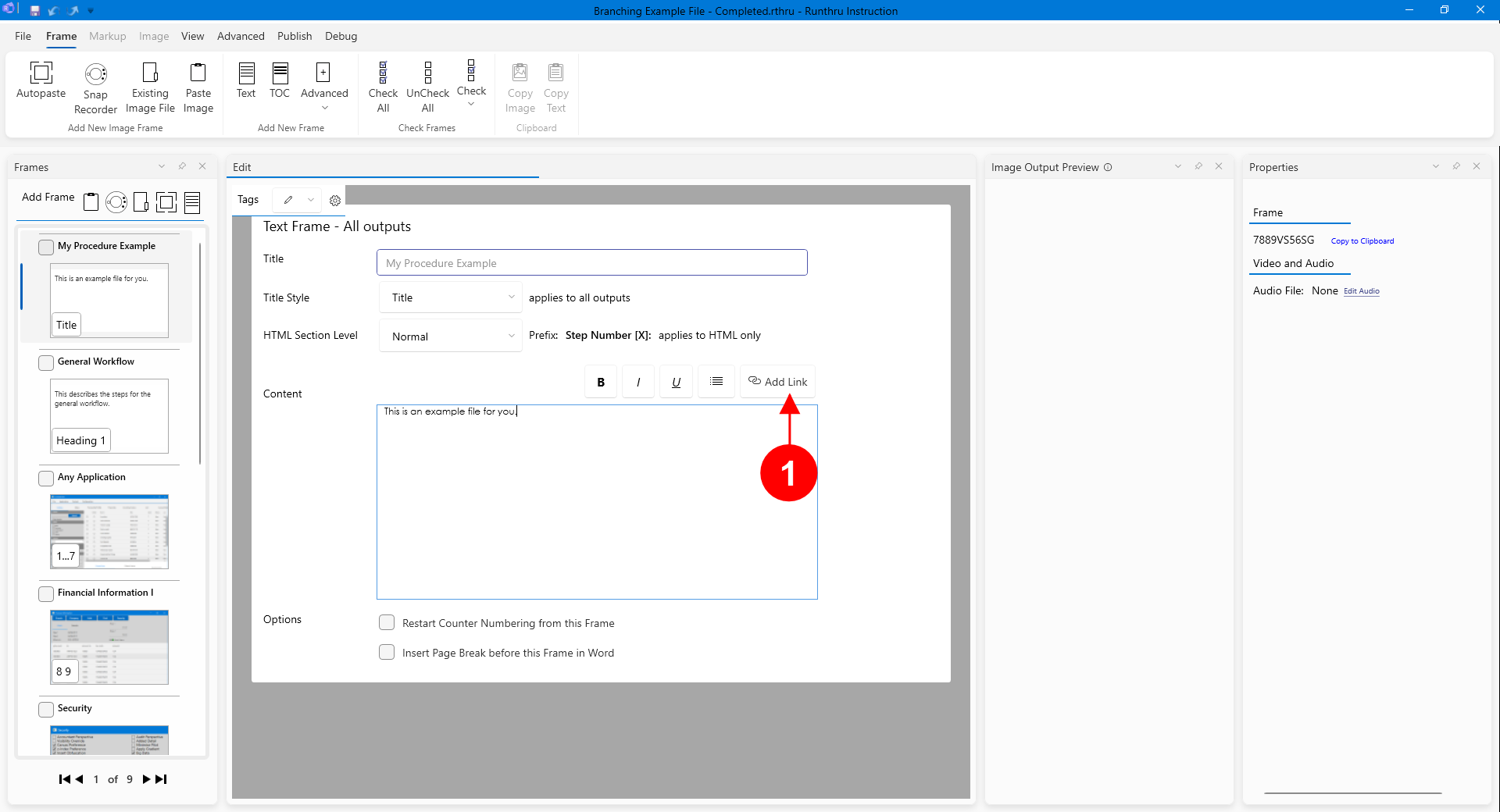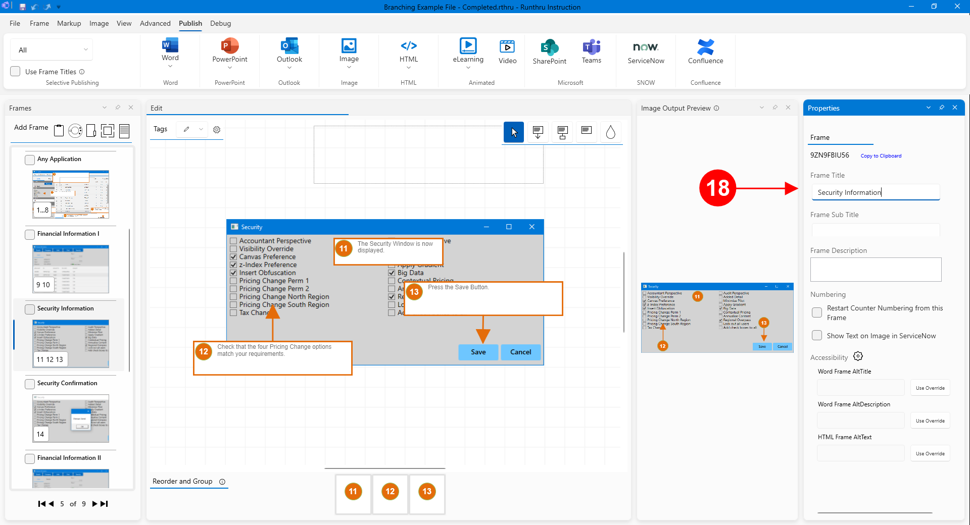 Likewise, changing the title of this Frame from Security to Security Information will update the link(s) targeting it.