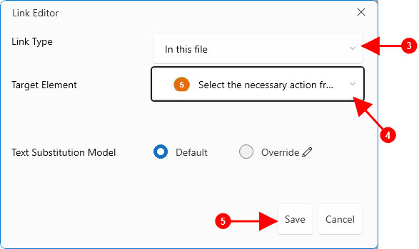 Select Internal Link from this dropdown list show all the other targets in the file that we can link to.