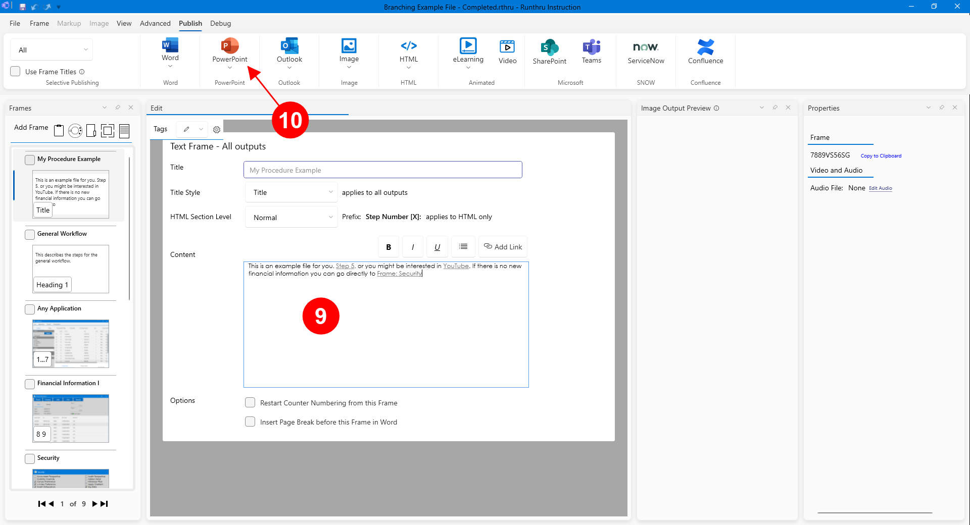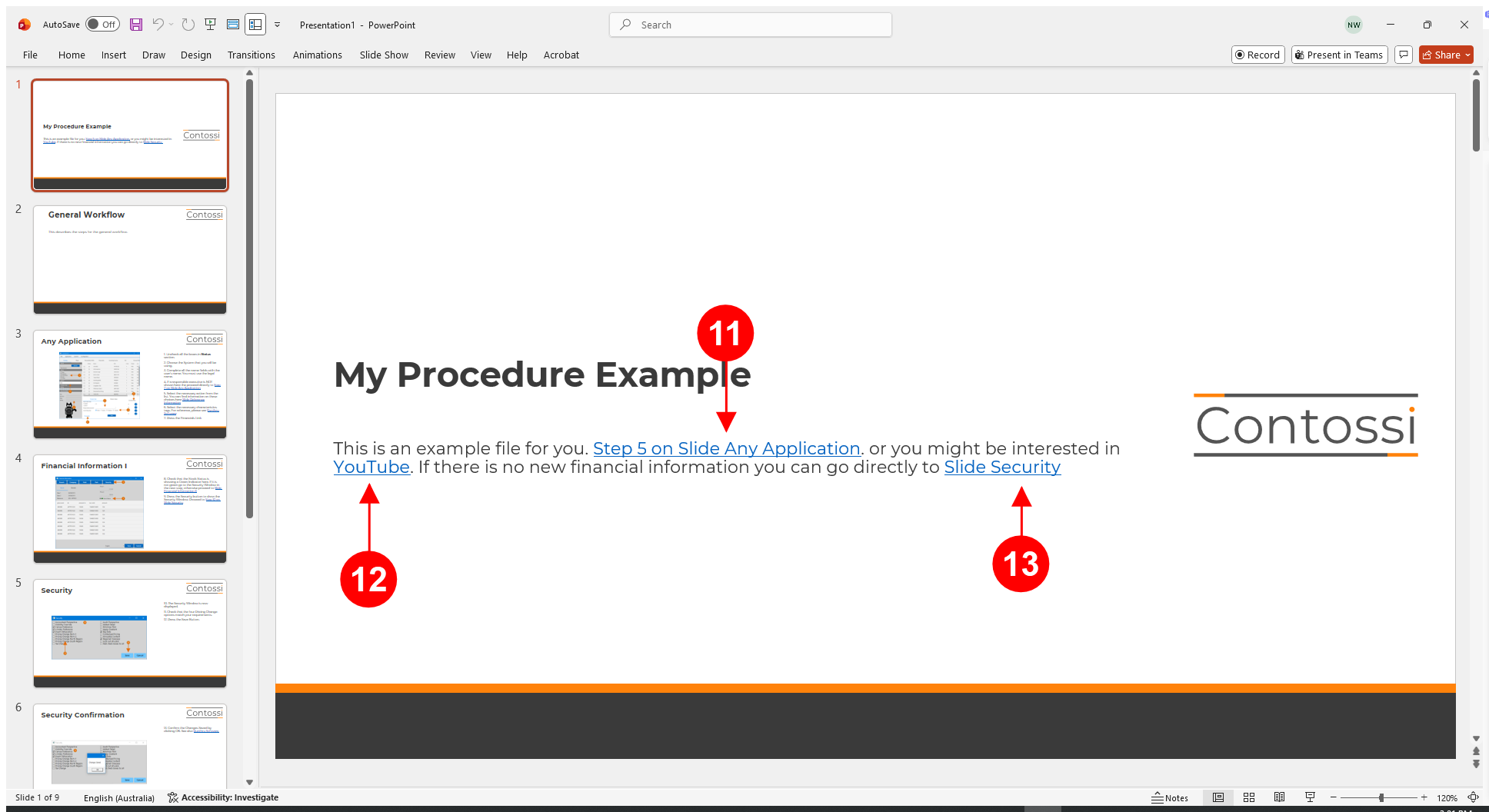 We'll now publish to PowerPoint to see the links in their finished form. In each case the text and link used can be different.