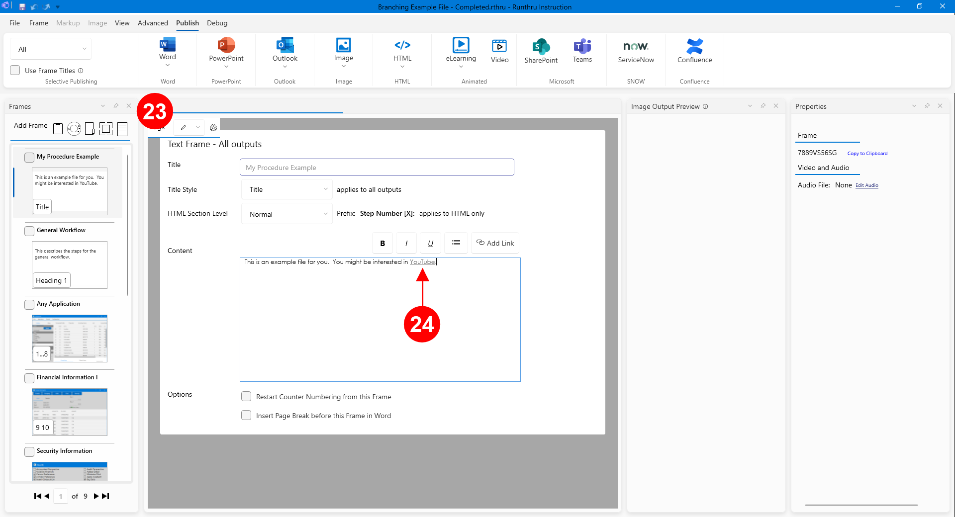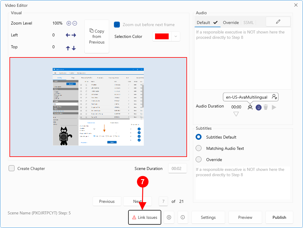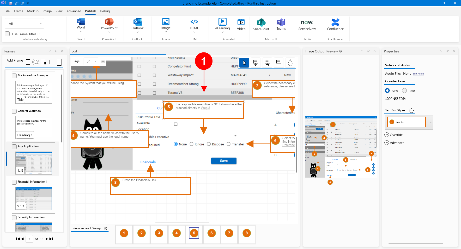 In this image you can see that Step 5 includes an optional link to Step 7. Using this text in a video will only be of limited assistance to the viewer and could be a difficult activity to find the referenced step.