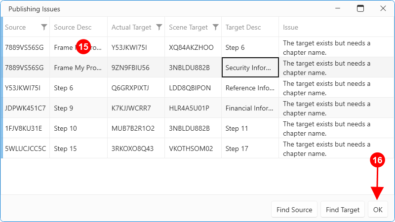 We'll continue with the Step 5 to Step 8 example. The issue is that the target exists, but there is no chapter name. We'll now add a chapter name for Step 8.