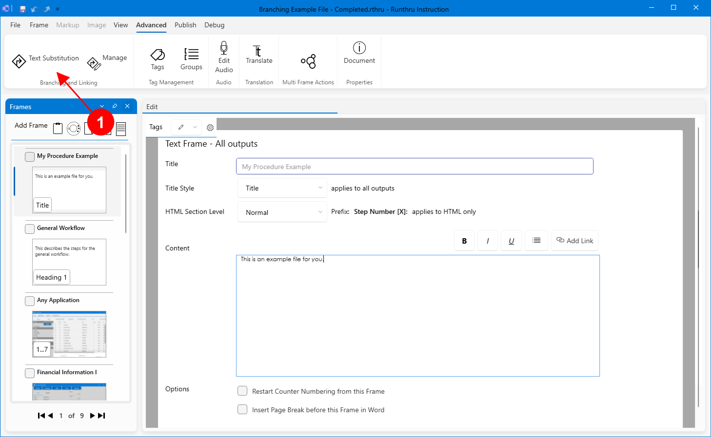 In the Advanced Tab, you will find a section called Branching and Linking, containing Text Substitution.
