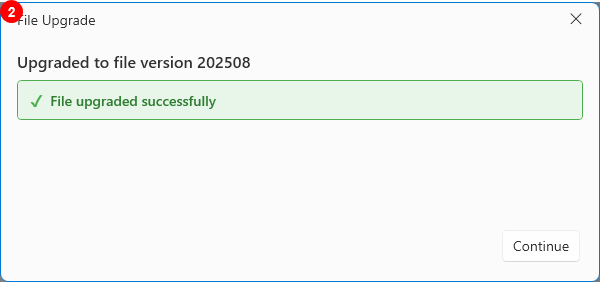 Upgrading a file to version 202508 (November 2025) is simply a matter of opening the file in the upgraded application.