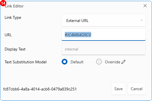 Pressing the Update button for this item will display the same link editor as seen in the previous example.